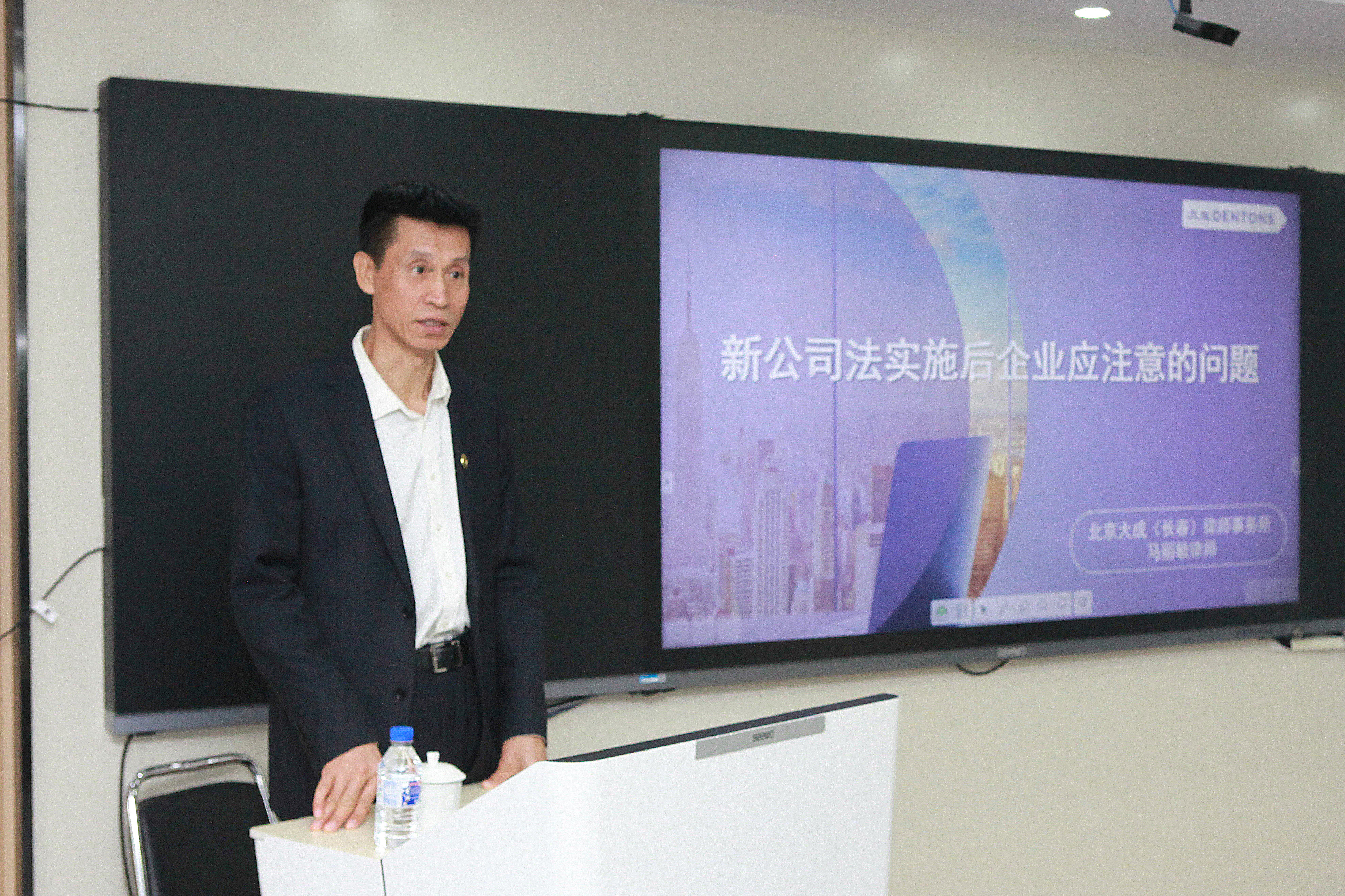 新公司法將于2024年7月1日正式實(shí)施,為增強(qiáng)集團(tuán)與各成員企業(yè)遵法、守法的法律意識(shí),更好地服務(wù)企業(yè)生產(chǎn)經(jīng)營(yíng)活動(dòng),提高企業(yè)防范法律風(fēng)險(xiǎn)能力,實(shí)現(xiàn)集團(tuán)穩(wěn)定、持續(xù)、健康發(fā)展的目標(biāo)。5月31日上午,集團(tuán)舉辦了關(guān)于新公司實(shí)施的法務(wù)培訓(xùn)會(huì),特邀北京大成(長(zhǎng)春)律師事務(wù)所馬麗敏律師擔(dān)任專題講師。會(huì)議由集團(tuán)副總裁宋立武主持,集團(tuán)班子成員、各分子公司經(jīng)營(yíng)班子成員、總部各部室部長(zhǎng)30余人參加培訓(xùn)。